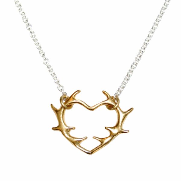 A pendant shaped like a heart formed of antlers in sterling silver or gold vermeil