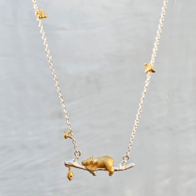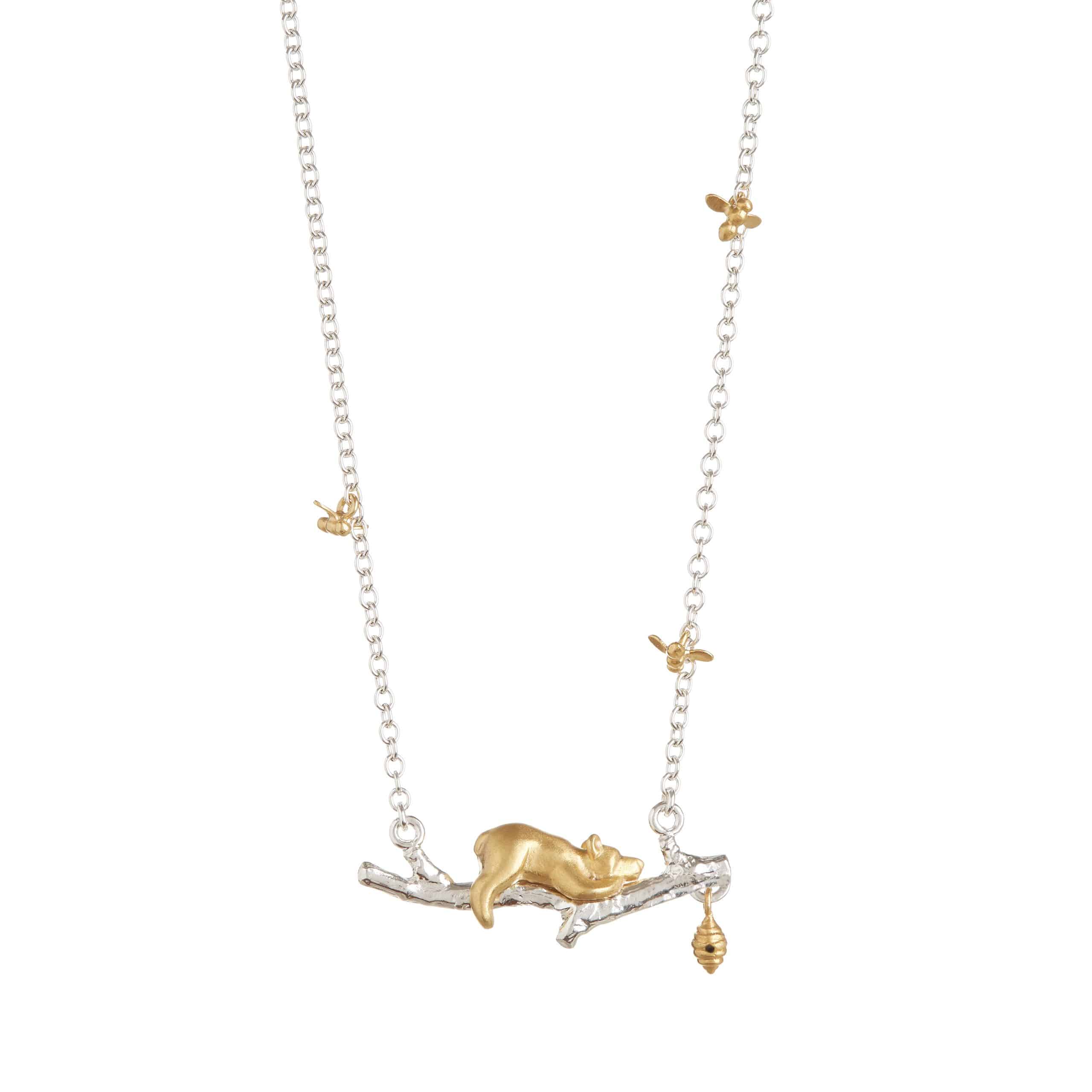 Silver and Gold Vermeil Bear & Honey Bee Necklace