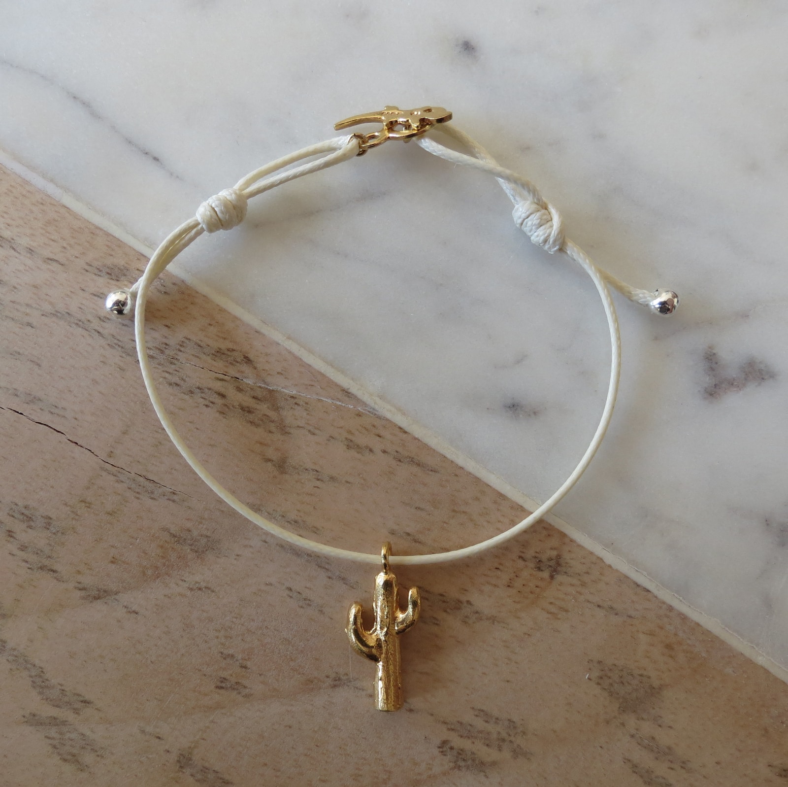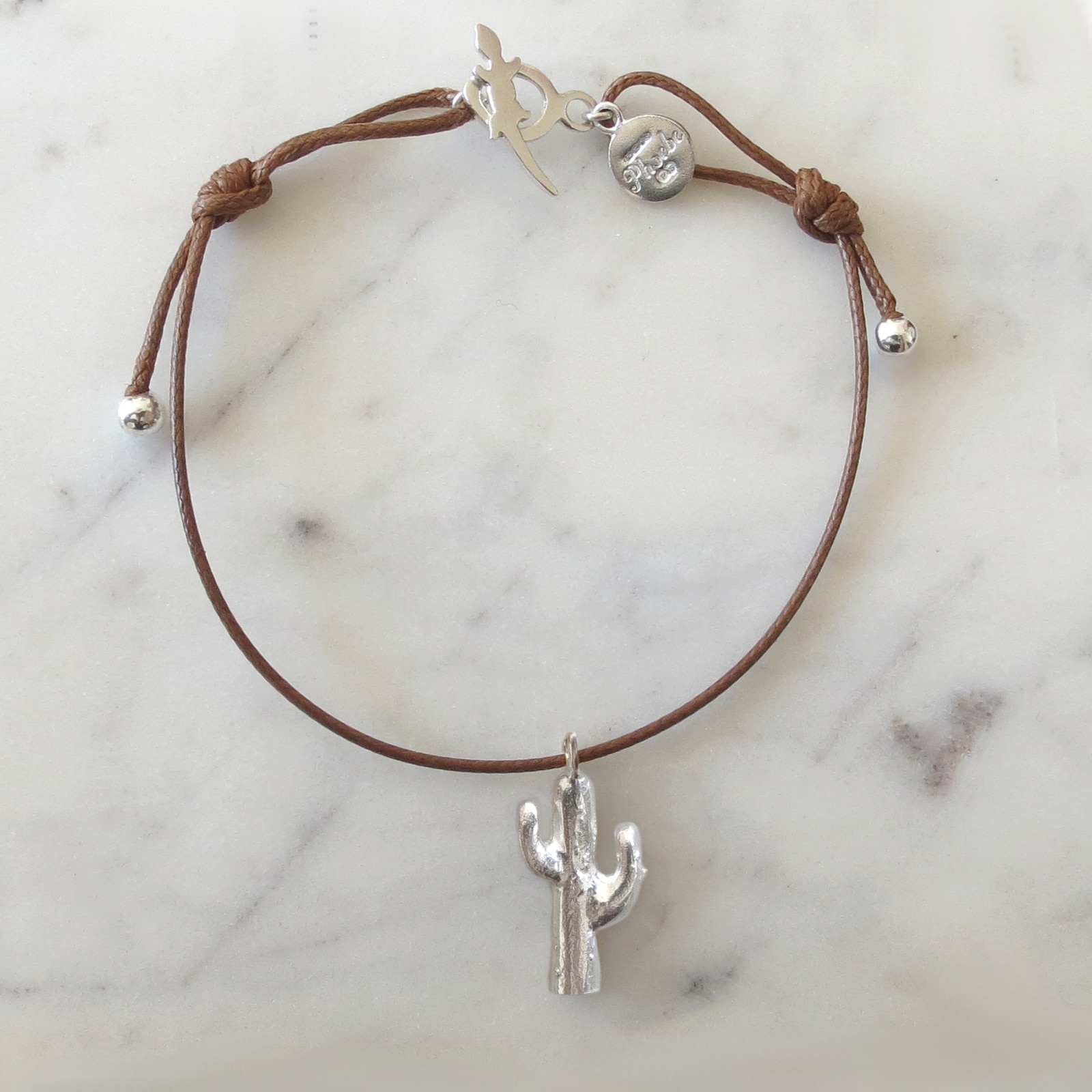 Sterling silver and wax cord cactus bracelet (One size – adjustable)