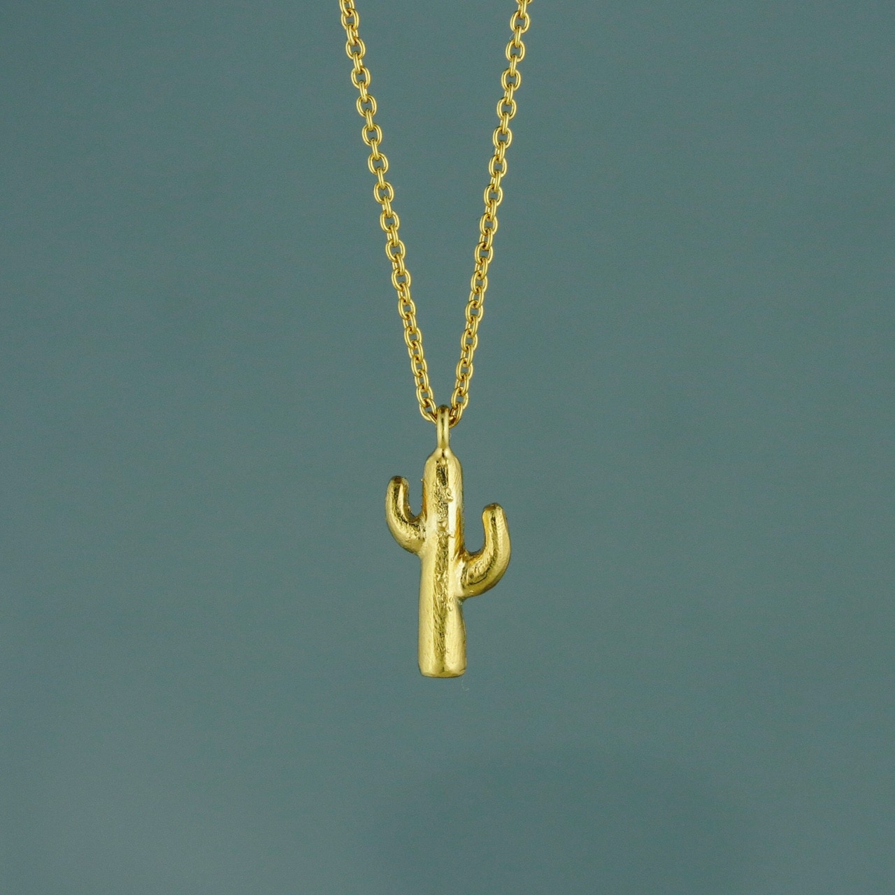 Cactus pendant in silver and/or gold vermeil with a hallmarked gecko shaped clasp.