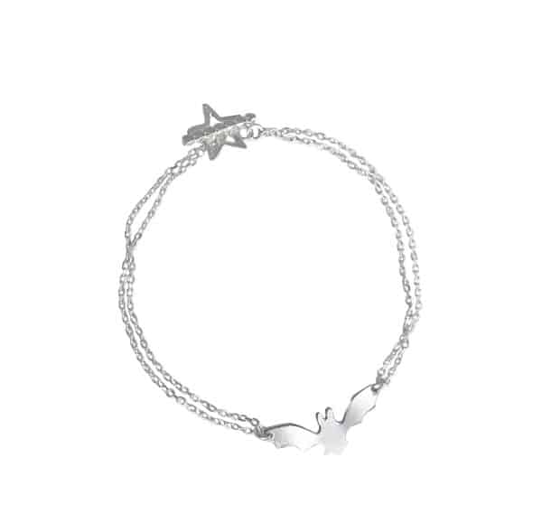 Sterling silver double diamond cut chain bat bracelet with a little star catch