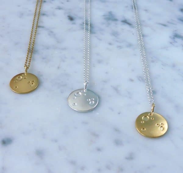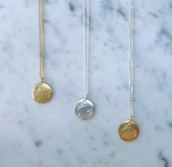 Sterling silver moon pendant on a twinkling diamond cut chain with a star clasp. Chose from silver or gold vermeil or a gold vermeil moon on a silver chain.