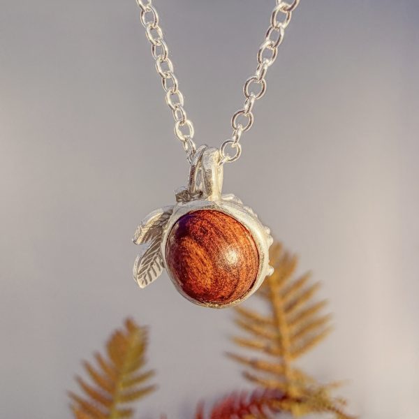 Wood and Silver Conker and Chestnut Leaf Pendant
