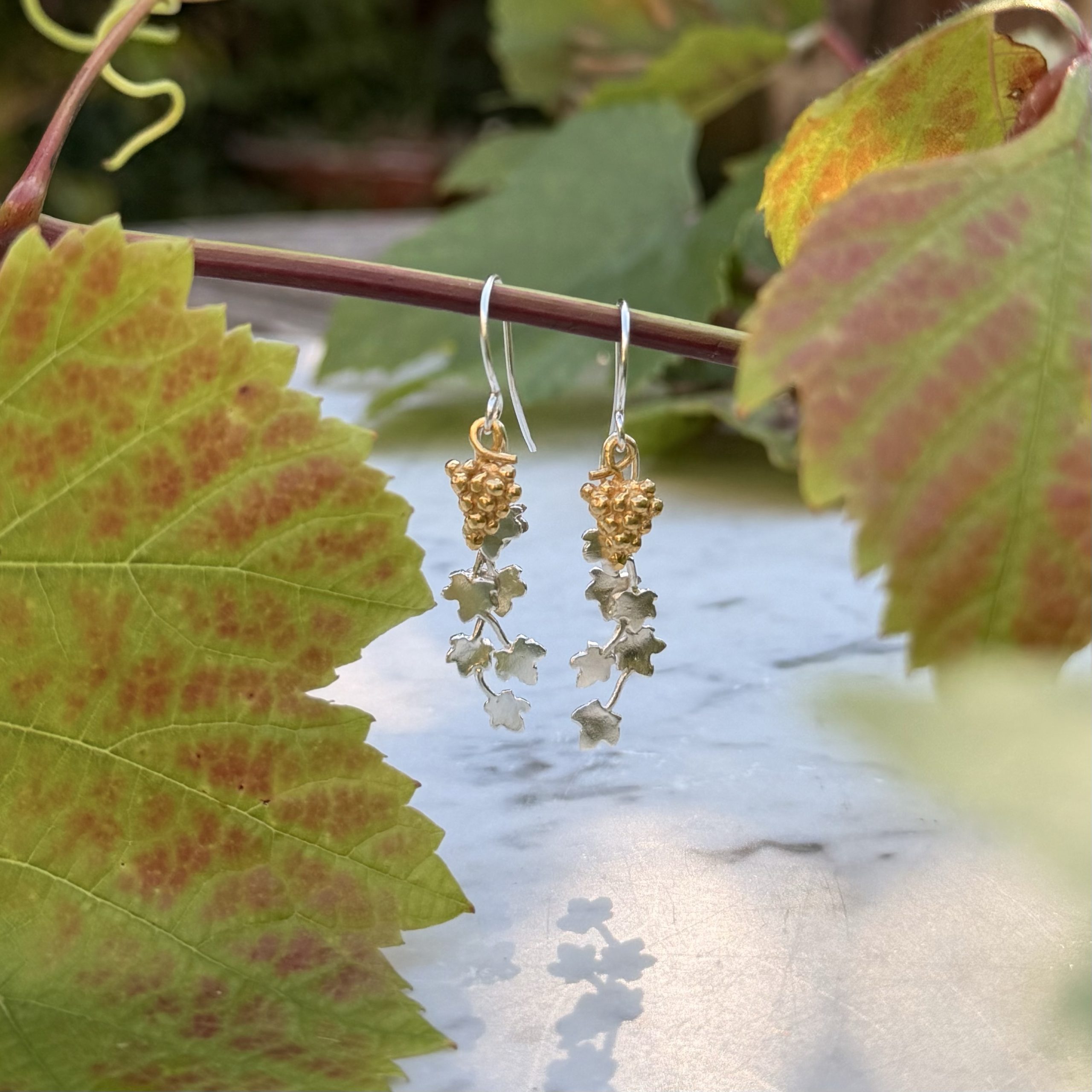 Cascading grapevine earrings, handmade in recycled sterling silver. Choose your desired finish. These can also be crafted in solid gold, just enquire for a quote.