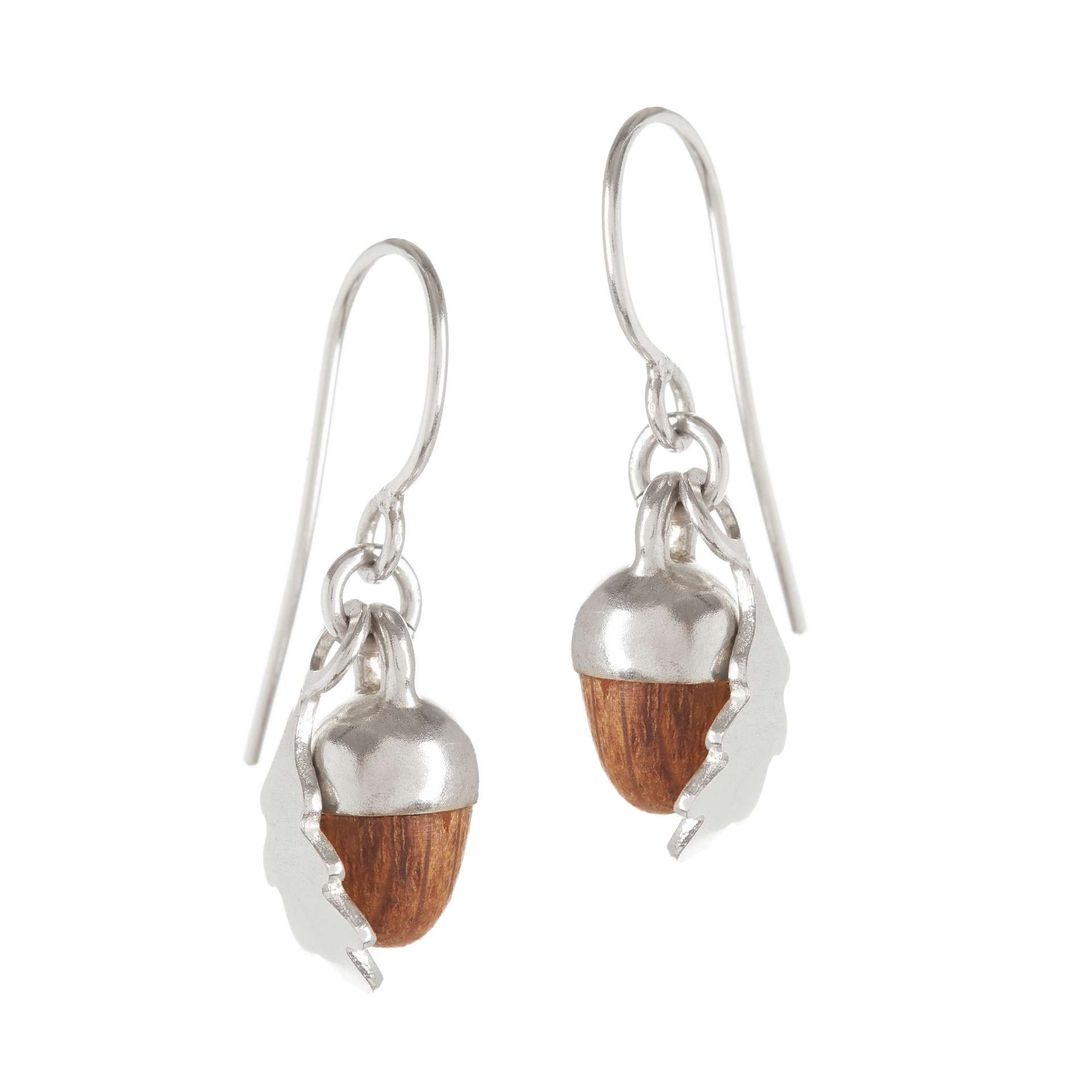 Silver and oak mini acorn earrings with silver or gold vermeil oak leaves