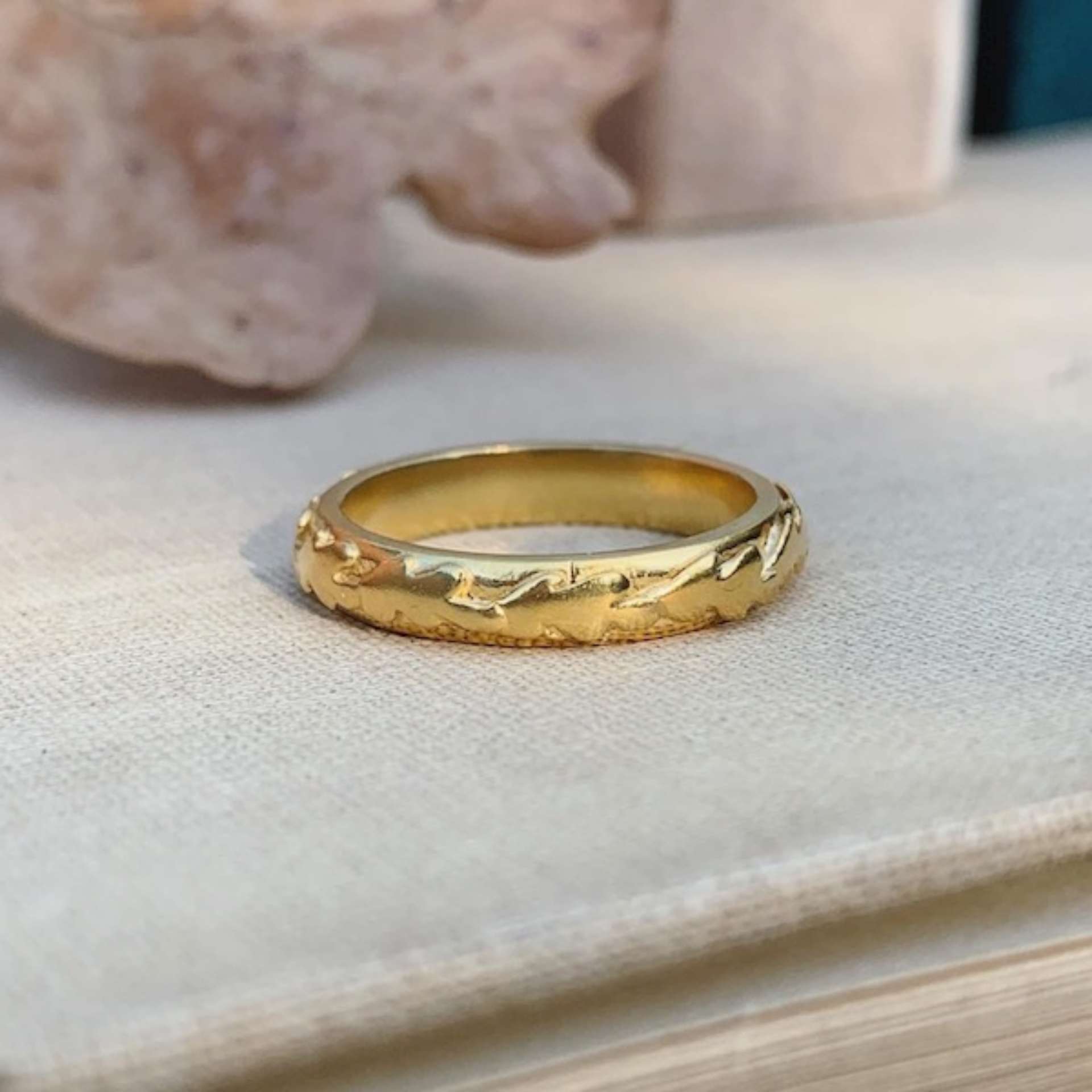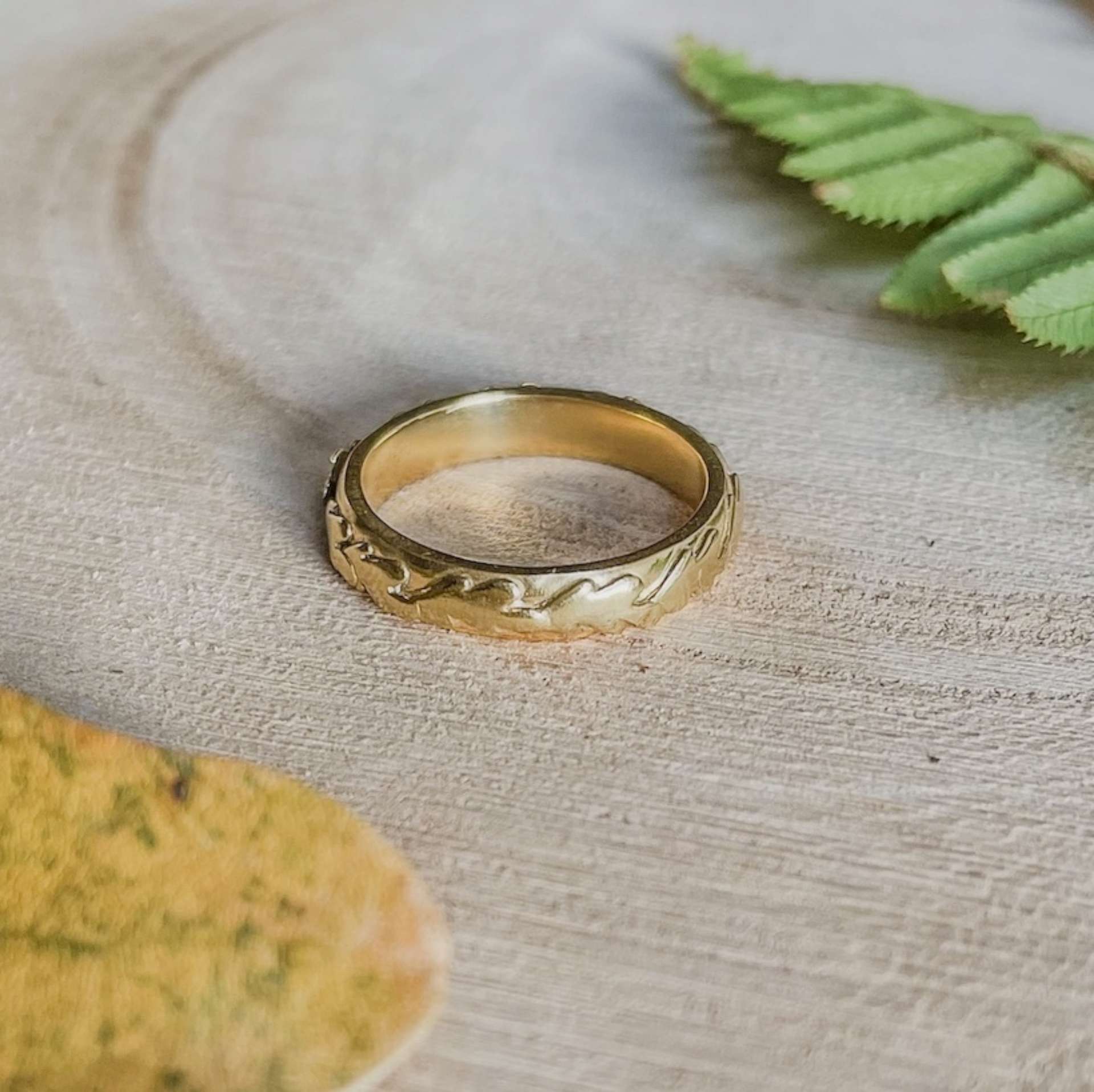 | Material | 18ct yellow recycled gold oak leaf band, Recycled Sterling Silver |