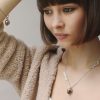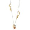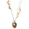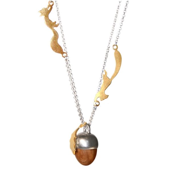 Silver and oak acorn necklace with a leaf and squirrels chasing each other around a double chain